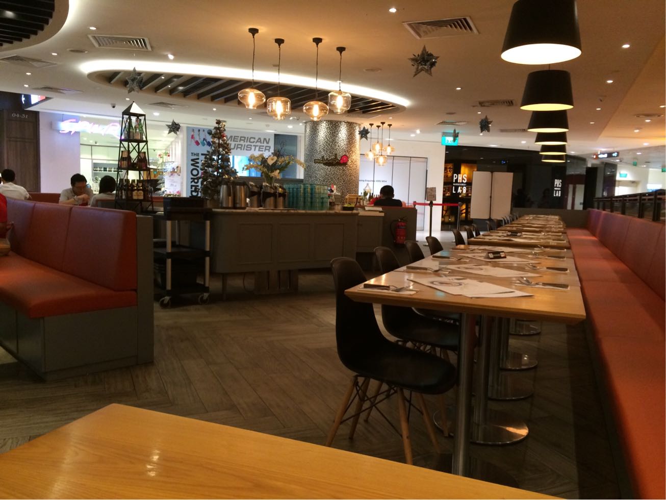 最初は窓際だったのだけれども、その奥のソファー席に移りました。