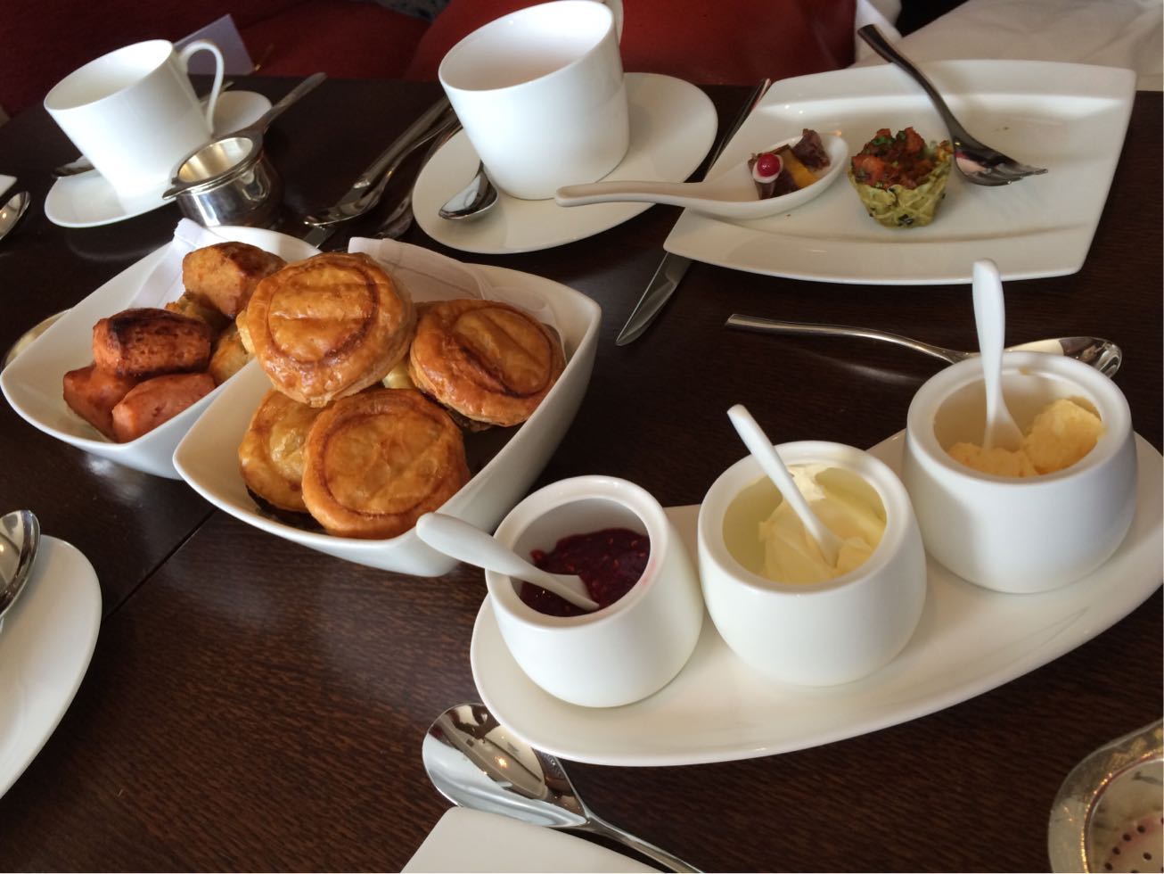 スコーン、カボチャのパイ、牛ほほ肉とタイムのパイ