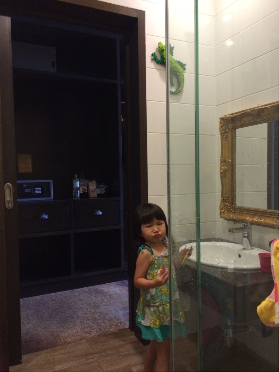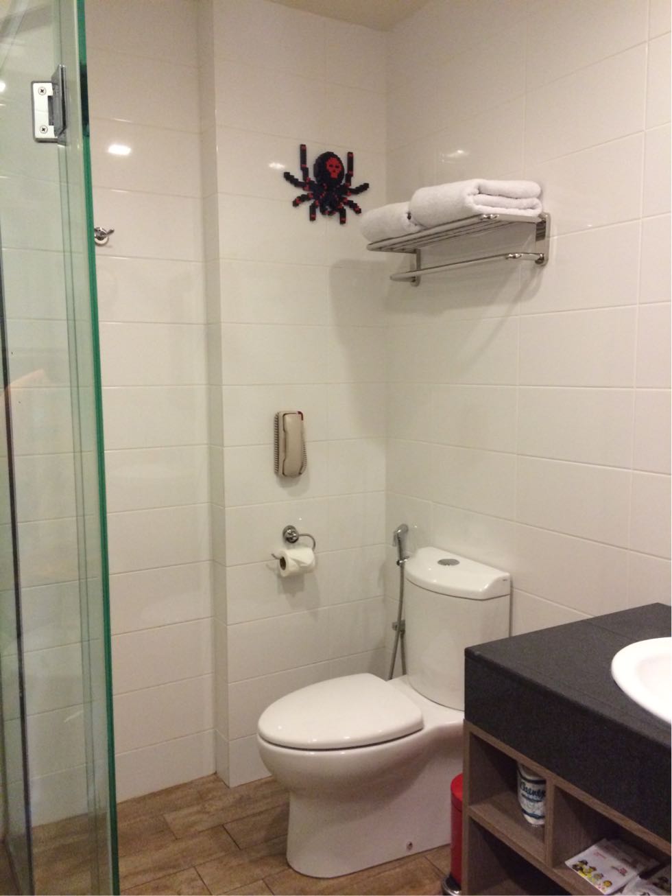 バスルームにはお腹にドクロ模様の黒いクモ。ちょっと気持ち悪い。