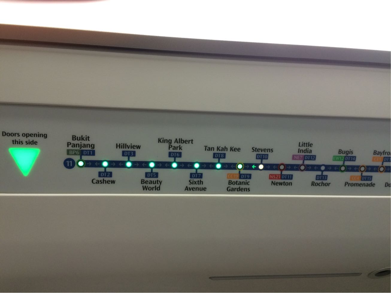 新しく開通した青いライン(Downtown線)の地下鉄に乗って、Sixth Avenue MRT駅下車。