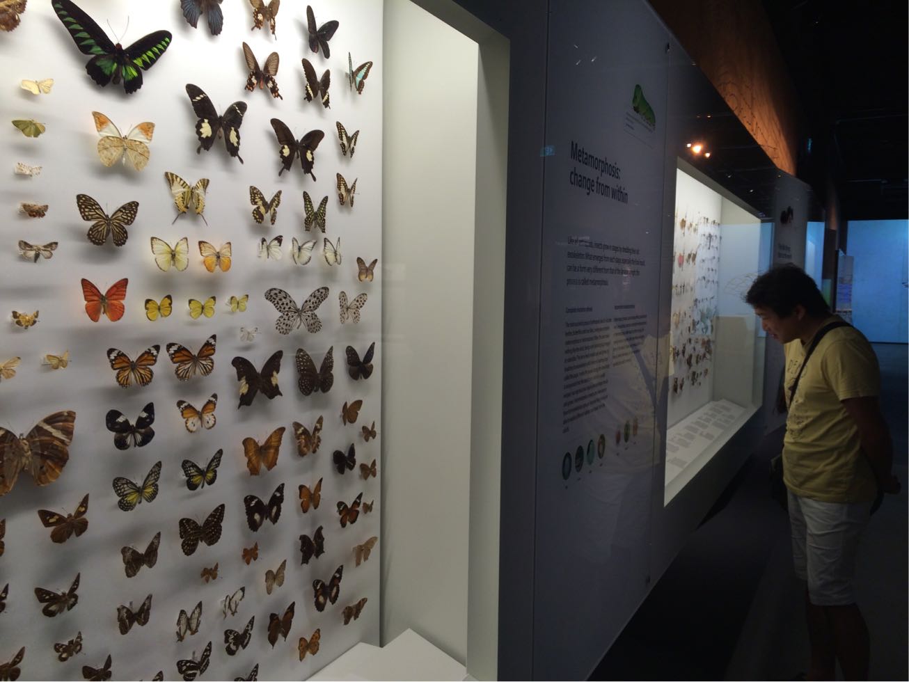 この壁には、虫たちの標本がずらり。
